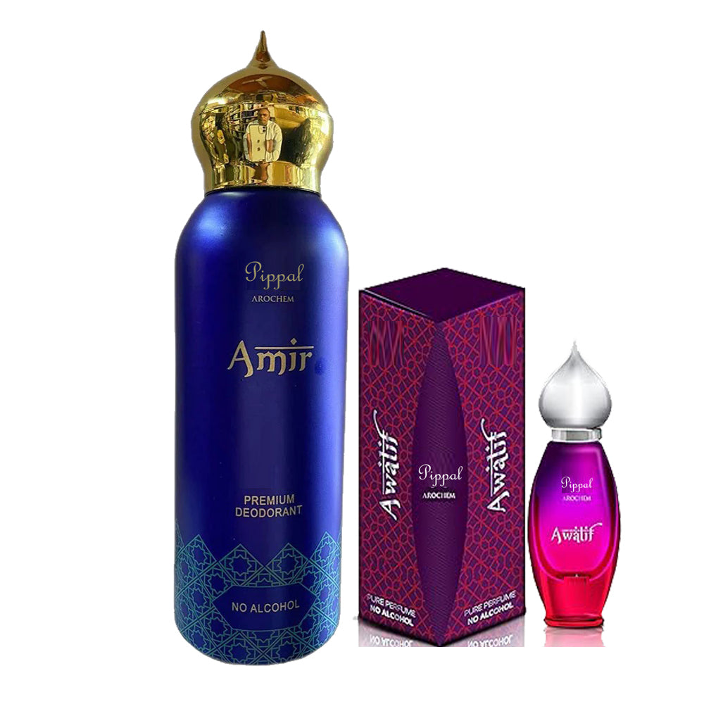 AMIR PREMIUM DEODORANT No Alcohol 200 Ml AWATIF 9 ML (Pack of 1)